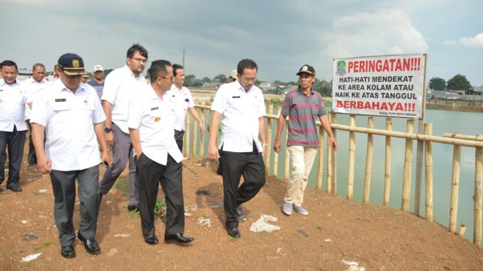 MEDAN SATRIA – Pjs Wali Kota Bekasi Ruddy Gandakusumah meninjau folder penampungan air rawa pasung di Kelurahan Kalibaru Kecamatan Medan Satria, Kota Bekasi usai mengikuti Rapat Koordinasi Nasional persiapan pelaksanaan Pilkada Serentak 2018 di Hotel Sahid Jakarta, Selasa 20/02/2018.