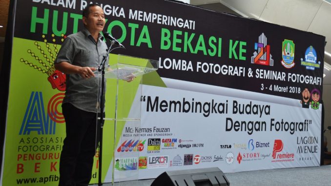 BEKASI SELATAN – Melalui fotografi kemajuan Kota Bekasi bisa diperkenalkan ke masyarakat luas. Demikian disampaikan oleh Pejabat Sementara (Pjs) Wali Kota Bekasi Ruddy Gandakusumah dalam sambutannya membuka lomba fotografi dan seminar fotografi di Grand Kamala Lagoon, Minggu (4/3).