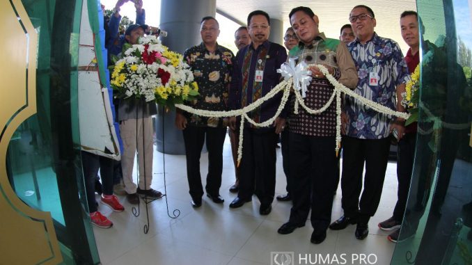 Caption foto: PERESMIAN: Acara potong pita oleh Wabup Eka, menandai diresmikannya penggunaan gedung baru Diskominfo Santik Kabupaten Bekasi, Jum'at (9/3).