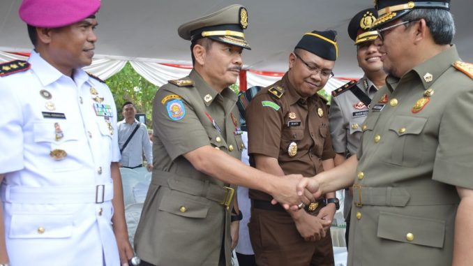 Ribuan anggota Satpol PP dari 27 Kabupaten/Kota Jawa Barat berkumpul untuk melakukan upacara gabungan Satpol PP di lapangan Pomal, Cipatuguran Kampung Baru, Kecamatan Pelabuhan Ratu, Kabupaten Sukabumi.