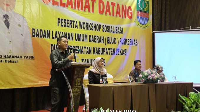 CIKARANG PUSAT – Dinas Kesehatan (Dinkes) Kabupaten Bekasi menggelar sosialisasi tentang Badan Layanan Umum Daerah (BLUD) kepada seluruh kepala Puskesmas di Kabupaten Bekasi, Selasa (20/3). Kepala Dinkes Kabupaten Bekasi, Sri Enny Mainiarty mengatakan, dengan sosialisasi ini, ke depan Puskesmas bisa menjalankan pola keuangan BLUD.