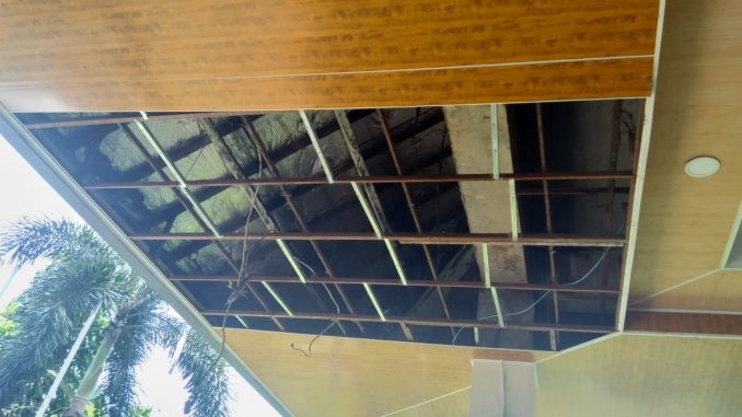 “Gak lama abang jalan, itu atap plafonnya langsung ambrol bang,”ujar anggota Satpol PP yang namanya tidak mau disebutkan, Senin (25/2/2019).