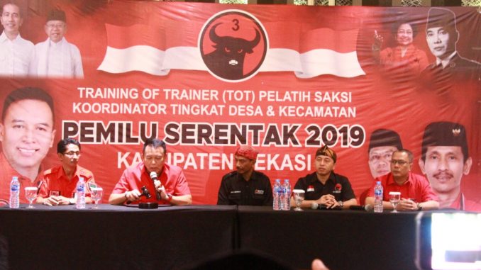 CIKARANG UTARA- PDI Perjuangan Kabupaten Bekasi helat Training Of Trainer (TOT) kepada 522 orang pelatih saksi koordinator desa dan kecamatan di Aula HotHoliday Inn, Minggu (17/03/2019) kemarin. Kegiatan tersebut dihadiri oleh Ketua DPD PDIP Jawa Barat,TB Hasanuddin.