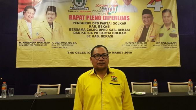 “Usai pilpres nanti, kita (DPD Golkar) akan melakukan penjaringan calon wakil bupati, sekaligus rapat pelaksanaan Musdalub pemilihan Ketua DPD partai Golkar definitif. Sebelum itu kita melakukan rapat harian untuk menentukan mekanisme penjaringan wakil bupati dan agenda Musdalub pemilihan Ketua DPD Golkar,” ungkap Budiarta saat Rapat Pleno Diperluas antara Pengurus DPD Golkar bersama Caleg DPRD Kabupaten Bekasi dan Ketua PK Golkar, di Hotel Celecton, Cikarang Utara, Jumat (29/3/2019) malam.