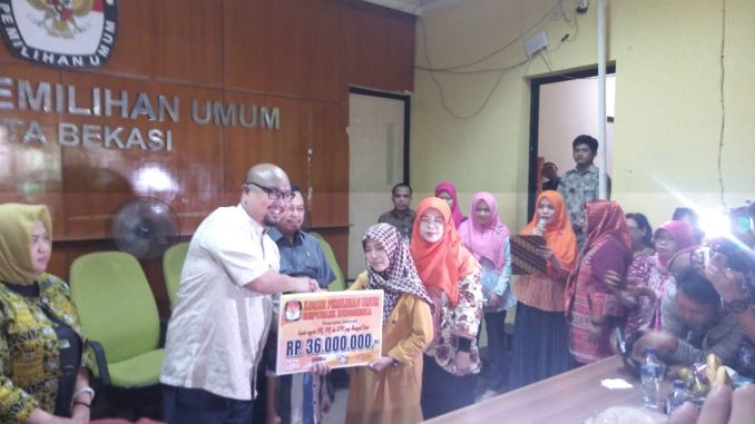 “Sepuluh petugas KPPS Kota Bekasi yang sudah diverifikasi kita berikan uang sebesar Rp36 juta. Ini bagian dari kerjasama dengan Kemenkeu untuk memberikan santunan kepada ahli waris petugas yang wafat saat bekerja pada Pemilu 2019 lalu,” ujarnya di kantor KPUD Kota Bekasi, Jumat (12/07/2019).