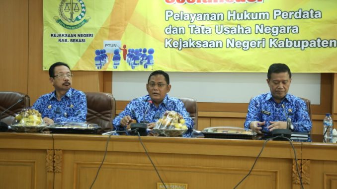 BAHAS PROGRAM: Bupati Bekasi Eka Supria Atmaja (tengah) didampingi Sekda dan Asda I dalam rapat bersama jajaran membahas 8 program prioritas yang bertempat di Ruang Rapat Bupati Bekasi, Selasa (17/09/2019).