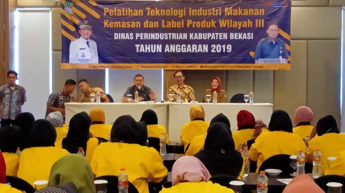 CIKARANG PUSAT-Dinas Perindustrian (Disprin) Kabupaten Bekasi kembali memberikan edukasi kepada 80 kelompok pelaku usaha menengah kecil mikro (UMKM) yang tersebar di berbagai wilayah. Kali ini edukasi yang diadakan dengan tema “Pelatihan Teknologi Industri Makanan Kemasan dan Label Produk Wilayah III”