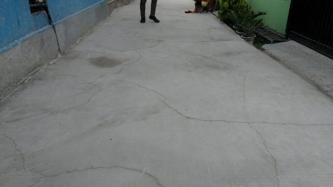 TARUMAJAYA-Peningkatan Jalan H. Dahlan RT 001/RW 005 Kampung Tanah Tinggi, Desa Setia Asih, Kecamatan Tarumajaya, Kabupaten Bekasi menuai keluhan warga. Pasalnya, baru selesai diperbaiki jalan ini sudah mengalami retak-retak, Jumat (11/10/2019) kemarin.