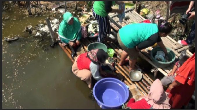 Sumur-sumur bor yang dimilik warga tidak mengeluarkan air, untuk mencuci dan mandi warga terpaksa menggunakan air sungai yang sudah tercemar limbah industri.