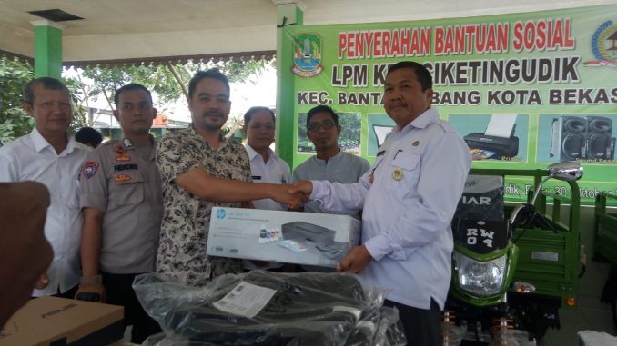 BANTARGEBANG-Lembaga Pemberdayaan Masyarakat (LPM) kelurahan Ciketingudik, Kecamatan Bantargebang, menyerahkan bantuan sebanyak 8 unit Gerobak Motor (Baktor) roda 3 lengkap dengan peralatan kebersihan,laptop, printer dan alat sound system untuk para ketua RT/RW juga kader Posyandu se-kelurahan Ciketingudik. Penyerahan unit dilakukan secara simbolis pada hari ini di balai kantor kelurahan.