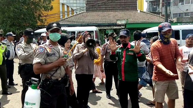 BEKASI TIMUR-Dalam upaya meminimalisir penyebaran virus Corona (Covid-19) sesuai instruksi pemerintah pusat, Polwan Polsek Bekasi Timur melaksanakan publik speaking bersama tiga pilar di Terminal Induk Kota Bekasi, Kelurahan Margahayu,Sabtu (21/03/2020).