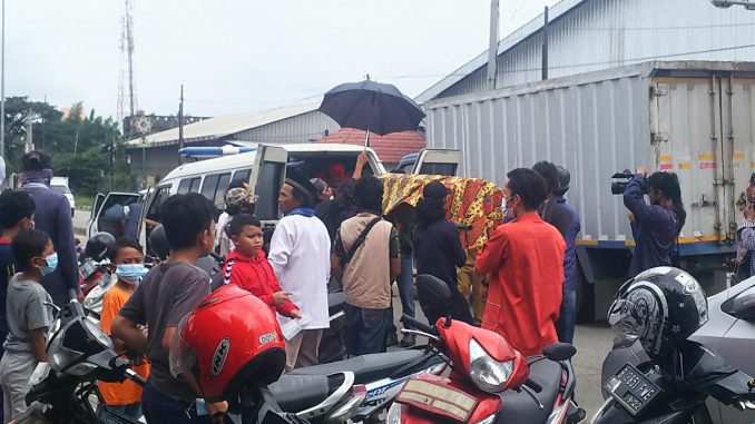 Jenazah almarhum saat hendak dimakamkan ke Pemakaman Walahir, Al-Barkah, Senin (08/02/2021) siang.