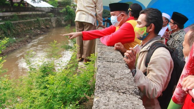 Wakil Wali Kota Bekasi Tri Adhianto tengah tinjau Tanggul Kali Cakung di RT02/02 Perumahan Harba 2, Kota Baru, Kelurahan Harapan Baru, Kecamatan Bekasi Barat, Rabu (17/03/2021).