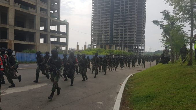 CIKARANG TIMUR – Setelah sebelumnya Meikarta jadi ajang latihan tempur detasemen khusus Brimob dan simulasi penanganan bencana oleh BNPB/BPDB, kali ini kembali menjadi arena latihan pertempuran kota dengan melibatkan 922 prajurit dari jajaran Kodam Jaya.