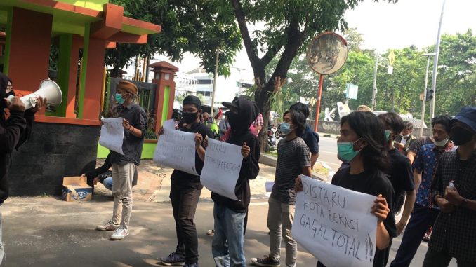 Aksi unjuk rasa Ikatan Mahasiswa Bekasi di depan Gedung Pemkot Bekasi, Kamis (03/06/2021).