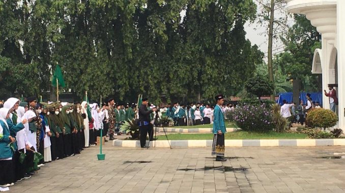 TAMBUN SELATAN – Bersuara lantang dengan sikapnya sempurna dan tegas, menyita perhatian para peserta upacara termasuk undangan yang hadir dalam Upacara Peringatan Hari Santri Nasional tahun 2022 tingkat Kabupaten Bekasi di Gedung Juang Tambun, Sabtu (22 Oktober 2022) kemarin.