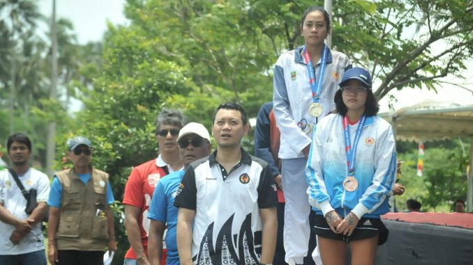 PANGANDARAN – Cabang olahraga renang Kabupaten Bekasi mengawinkan dua medali emas di nomor 4.000 meter renang perairan terbuka atau open water swimming (OWS) di Embung Pangandaran, Desa Panajung, Kecamatan Pangandaran, Kabupaten Pangandaran pada Porprov Jawa Barat XIV 2022, Kamis (03/11/2022).