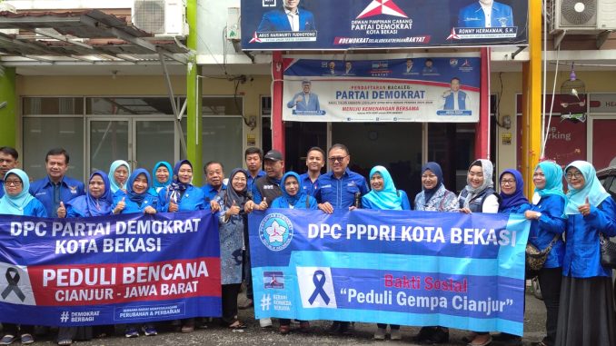 BEKASI TIMUR – Dewan Perwakilan Cabang (DPC) Partai Demokrat bersama Perkumpulan Perempuan Demokrat Republik Indonesia (PPD – RI) cabang Kota Bekasi memberikan bantuan untuk korban gempa bumi Cianjur.