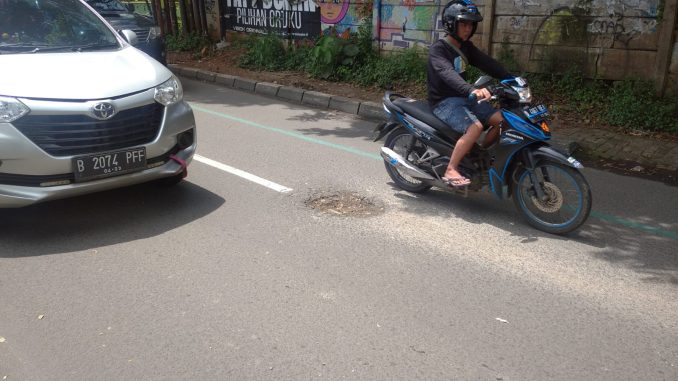 “Iya, kalau hujan gak kelihatan. Kemarin saya hampir jatuh, kaget roda motor saya kena lobang,” kata seorang pengendara sambil menunjuk lokasi lubang, saat berhenti di lampu merah dekat Kantor DPRD Kota Bekasi, Kamis (09/03/2023).