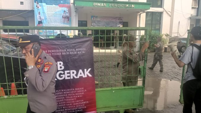 BEKASI TIMUR – Mahasiswa yang tergabung dalam Aliansi Pemuda Pembaharu Bangsa (APPB) menggeruduk Kantor Dinas Pendidikan Kota Bekasi.Mereka menyebut dinas tersebut dalam keadaan tidak baik-baik saja.