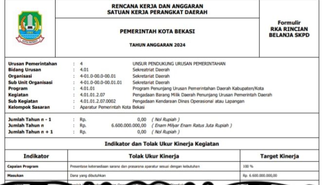 THR TKK Tersandung Ploting Program Prioritas Sekda Kota Bekasi
