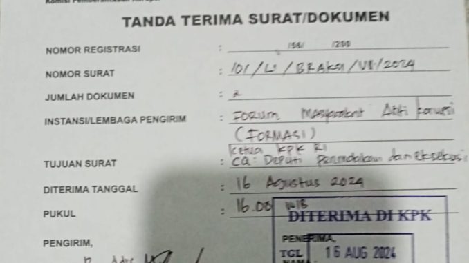 CIKARANG PUSAT – Empat elemen masyarakat melaporkan dugaan korupsi dana hibah KONI Kabupaten Bekasi tahun anggaran 2023 senilai Rp 6, 8 miliar ke Komisi Pemberantasan Korupsi (KPK) pada 16 Agustus 2024 lalu.