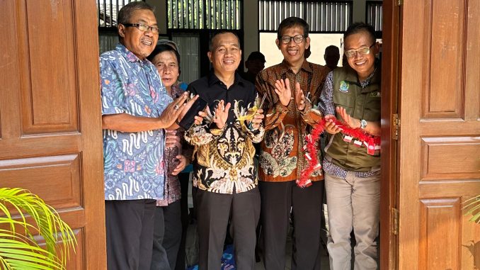 Peresmian Bank Sampah Kemuning RW. 13 dengan pengguntingan pita oleh Sekel Pekayon Jaya, Imron Hadi.