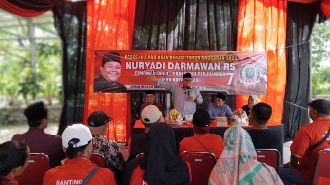 BEKASI TIMUR- Wakil Ketua I DPRD Kota Bekasi, Nuryadi Darmawan meminta pengelolaan dana hibah Rp100 juta untuk setiap RW dilakukan dengan sistem swakelola. Hal ini disampaikannya saat menggelar reses ke III Tahun 2025 di Wisma Jaya RT 05 RW 05 , Kelurahan Aren Jaya, Bekasi Timur.
